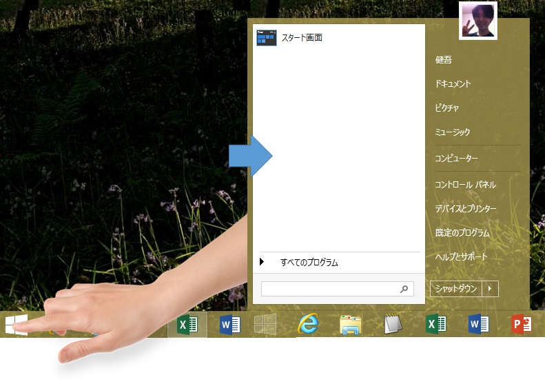 スタートメニューをクリックすればモダン画面(旧メトロ画面) に切り替わります。